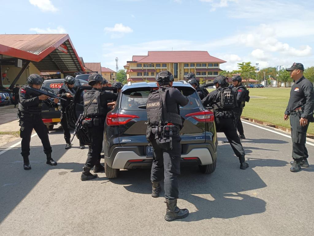 Pontianak Kalbar-pelitakota.id Personel Detasemen Gegana Satbrimob Polda Kalbar melaksanakan Latihan Peningkatan Kemampuan Urban Warfare di Lapangan Jananuraga Polda Kalbar, Sabtu (29/4/2023).