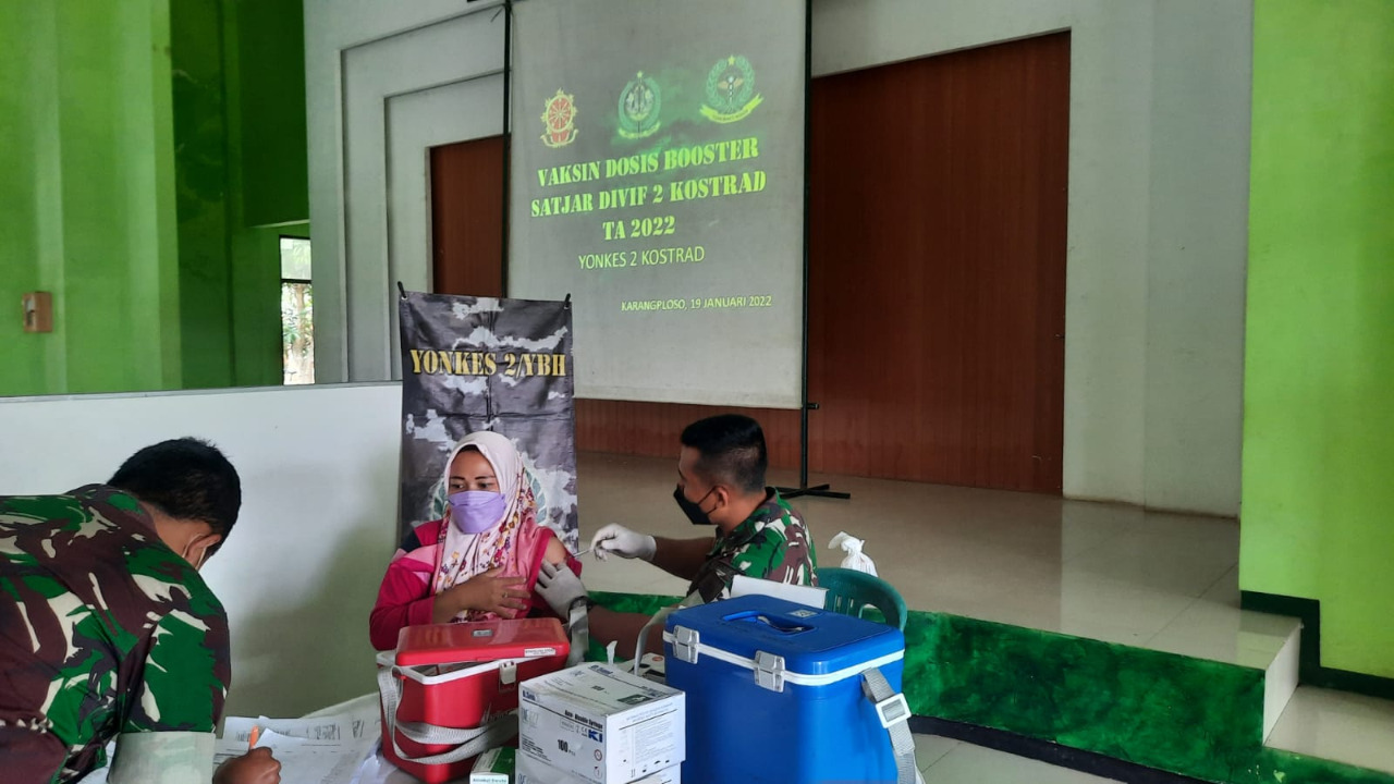 Kegiatan Vaksinasi ini dilaksanakan di Aula Mayonkes 2 Kostrad. Pelaksanaan vaksinasi ini merupakan upaya pemerintah dalam rangka percepatan penanganan penyebaran virus Covid 19.