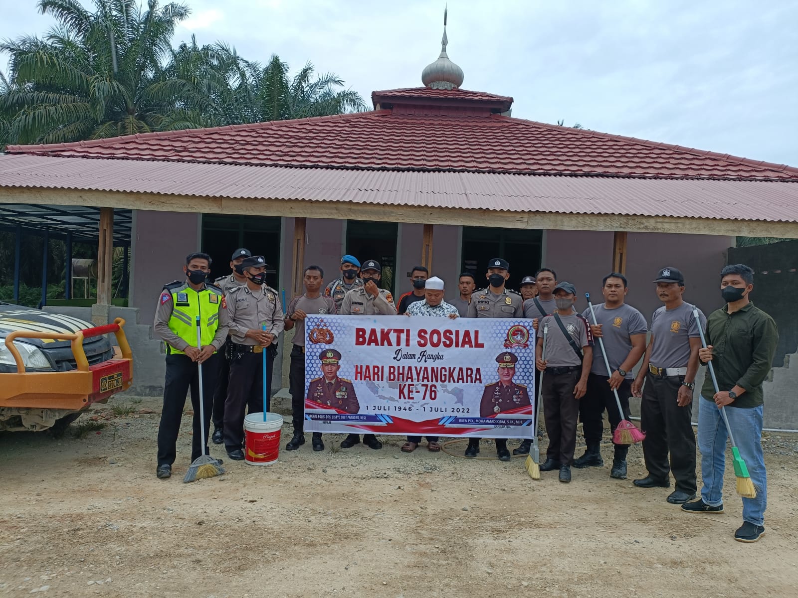 Baksos Rabu (15/6/2022), Personil Polsek Bonai Darussalam dikemas dengan bentuk kegiatan gotong royong pembersihan rumah ibadah di Desa Sontang.