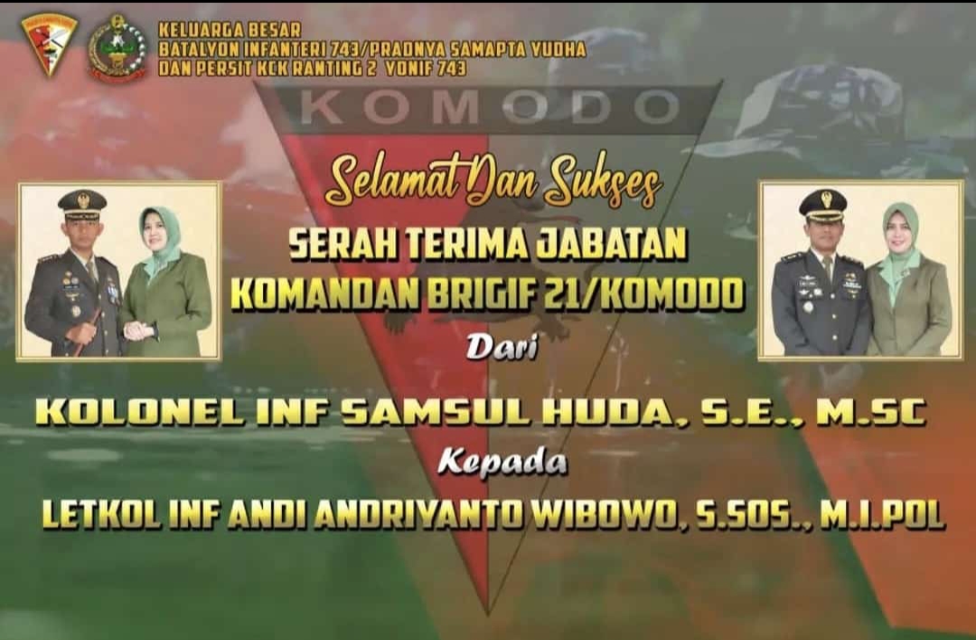 Danbrigif 21/Komodo dari Kolonel Inf Samsul Huda, S.E., M.Sc., selanjutnya akan menduduki jabatan Kasiren Kasrem 032/Wbr Kodam I/BB.