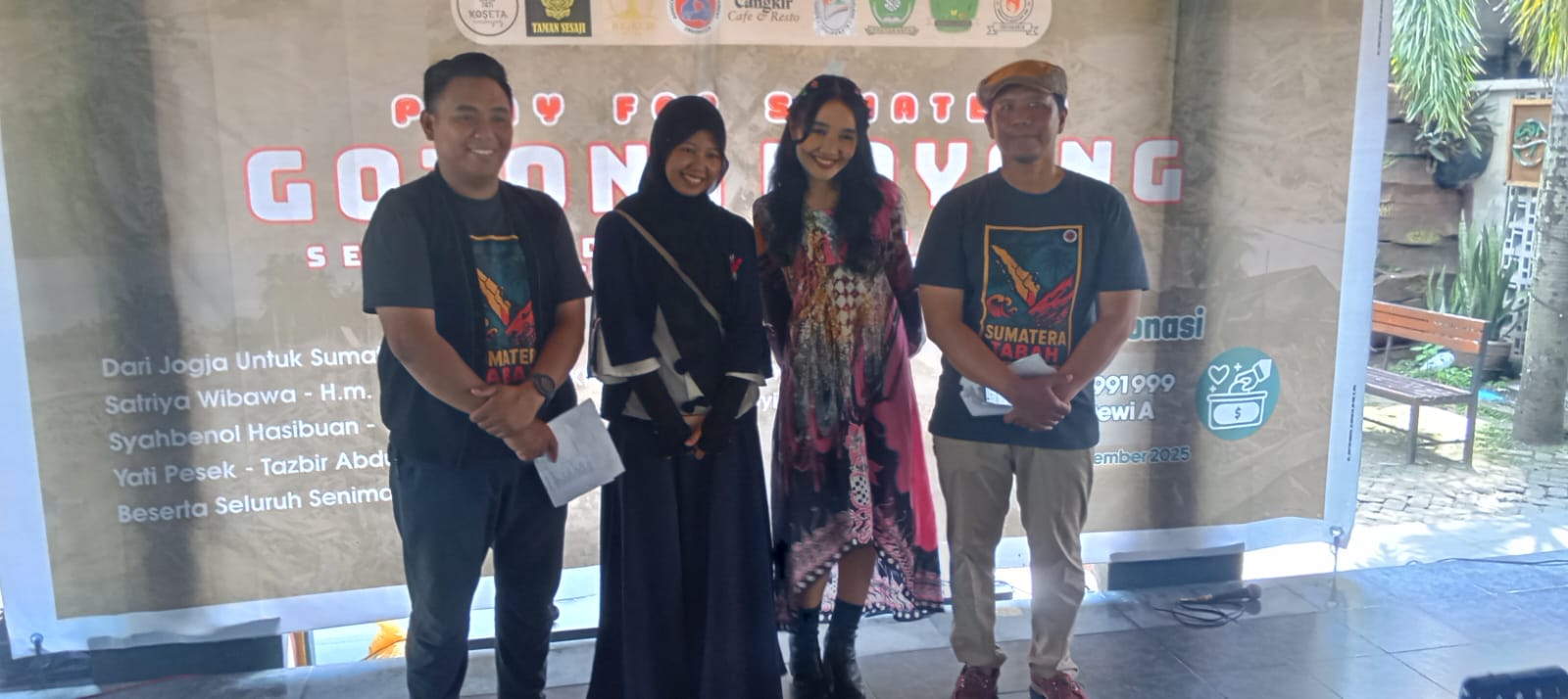 YOGYAKARTA, 26/12/2025 – Penyanyi binaan produser musik Jan Djuhana dari label JD Records Jakarta, Livy Laurens, yang juga didukung oleh HP Managemen, bergerak aktif menjadi sosok terdepan dalam mendukung masyarakat korban banjir bandang di Sumatera. Bersama komedian Yati Pesek, budayawan senior Yani Sapthoedojo, pakar pariwisata Tazbir Abdullah, dan ratusan seniman-budayawan lainnya, Livy menggelar penggalangan dana yang disalurkan langsung ke korban bencana.