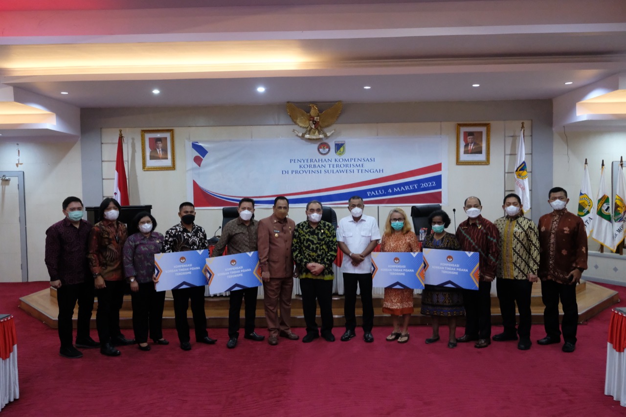 PALU – Lembaga Perlindungan Saksi dan Korban (LPSK) membayarkan kompensasi bagi 142 korban terorisme masa lalu (KTML) yang berdomisili di Sulawesi Tengah (Sulteng). Kompensasi senilai Rp23.920.000.000 diserahkan simbolis oleh Ketua LPSK Hasto Atmojo Suroyo bersama Wakil Gubernur Sulteng Mamun Amir dan anggota Komisi III DPR RI Sarifudin Sudding bertempat di kantor Gubernur Sulteng, Jumat (4/3-2022).