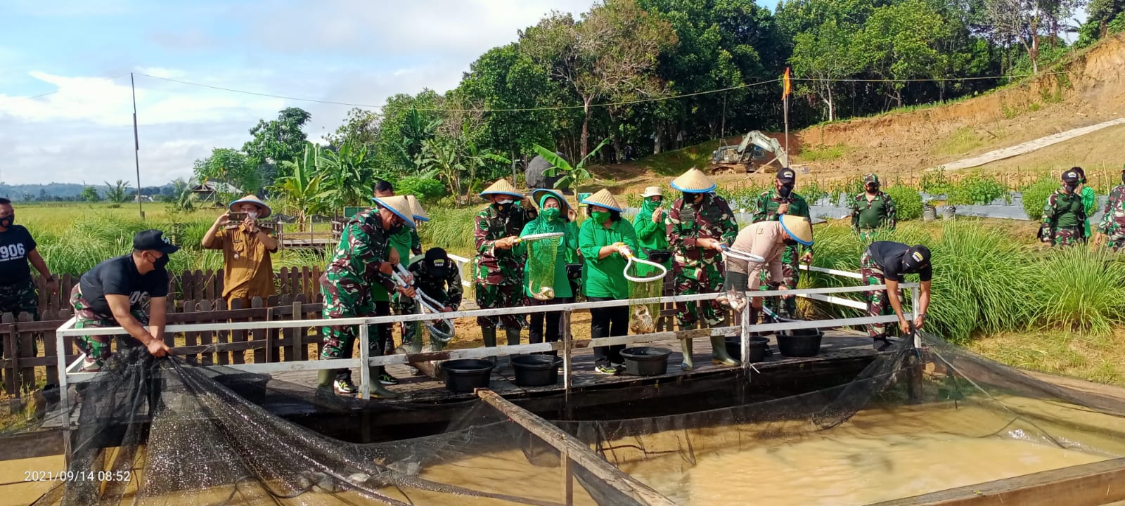SAMARINDA – PELITAKOTA.ID Pangdam VI/Mulawarman Mayjen TNI Heri Wiranto S.E,.M, M.Tr Han di damping Danrem 091/ASN Brigjen TNI Cahyo Suryo Putro S.IP, M.Si beserta rombongan kunjungan kerja dalam rangka Panen Raya Ketahanan Pangan “Desa Sinergi Hijau” Wilayah Kabupaten Kutai Kartanegara, yang berada di Desa Tanjung Batu Kecamatan Tenggarong Seberang Kabupaten Kutai Kartanegara, Selasa (14/9/2021).