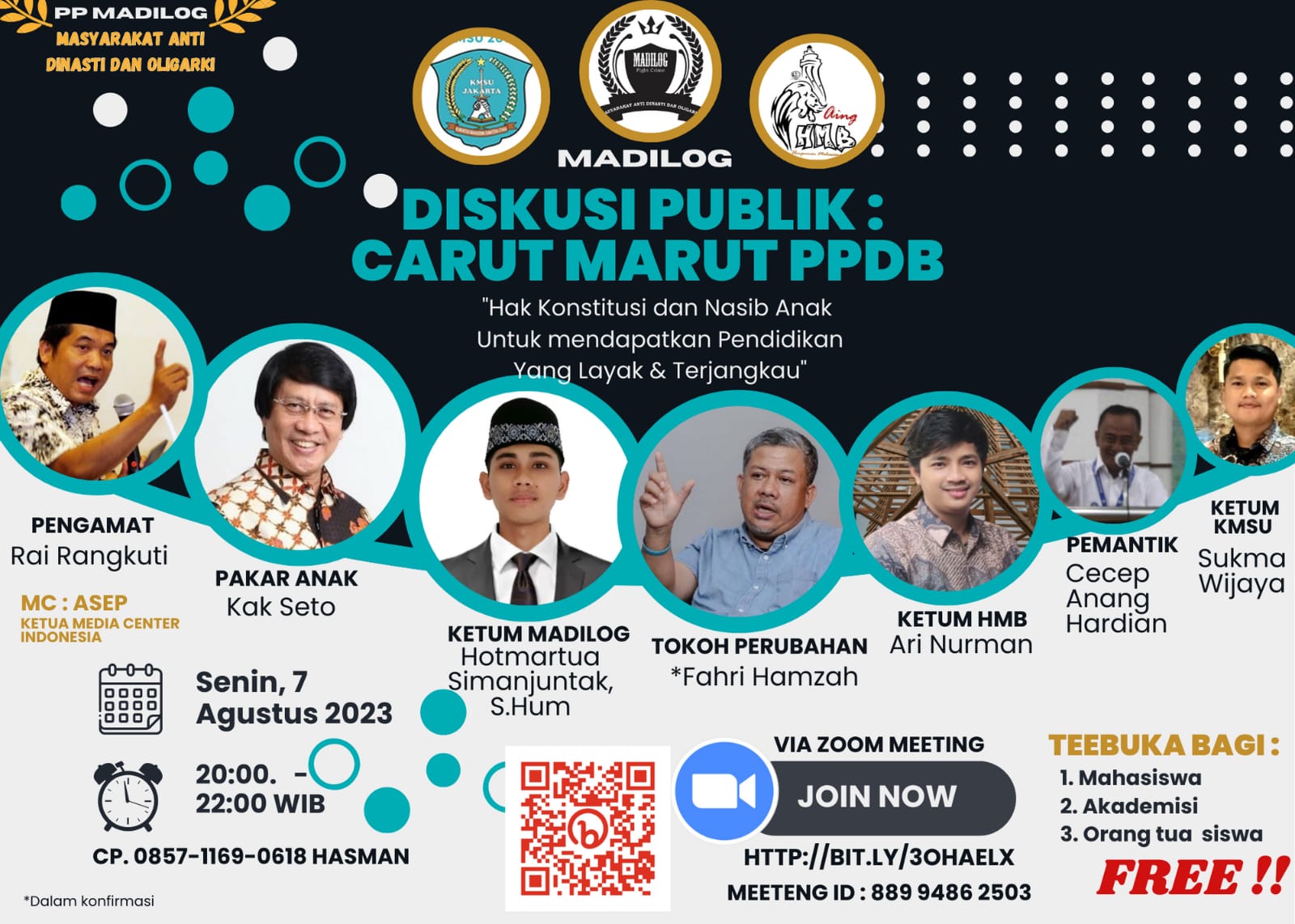 Hotmartua Simanjuntak, S.Hum atau akrab disapa Hasman selaku Ketua Umum MADILOG, menyampaikan bentuk keprihatinan dan kepedulian terhadap dunia pendidikan, sehingga rencana Masyarakat Anti Dinasti dan Oligarki (MADILOG) akan mengadakan diskusi publik terkait carut marut PPDB.