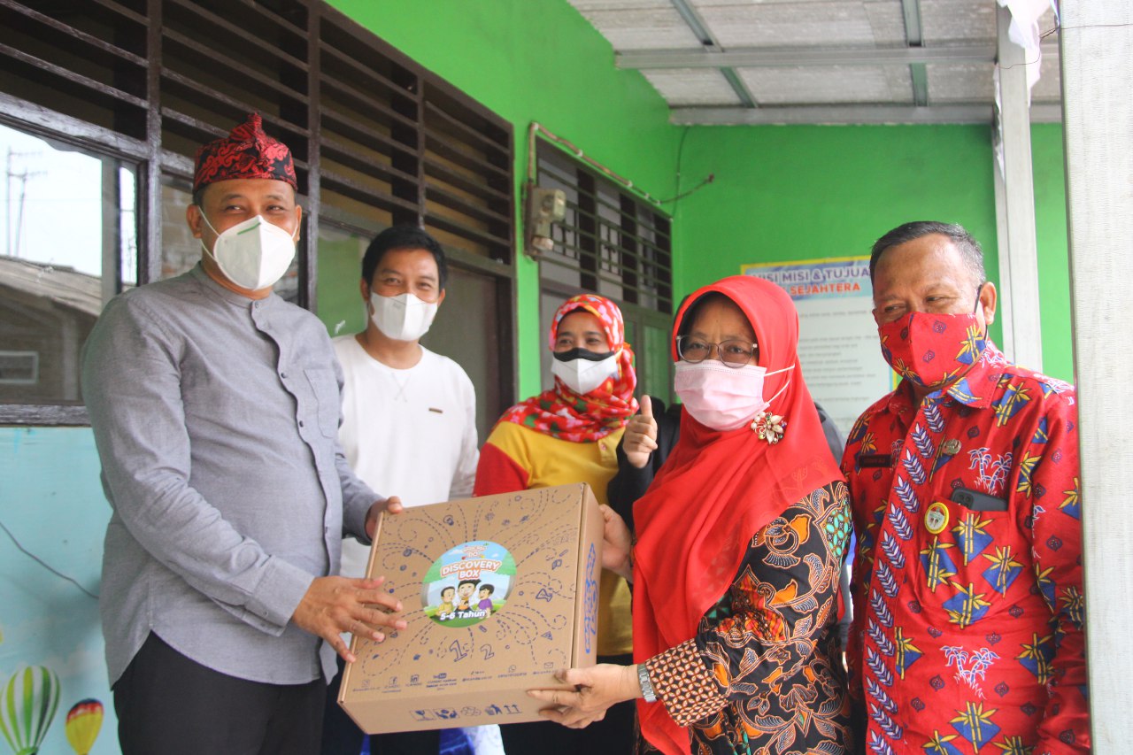 KOTA BEKASI – PELITAKOTA.ID Dalam rangka meningkatkan kualitas belajar mengajar tingkat kanak-kanak, Wakil Wali Kota Bekasi Dr. Tri Adhianto secara simbolis memberikan Magic Box media belajar interaktif kepada TK Sejahtera Kelurahan Margahayu Kecamatan Bekasi Timur, Jumat (20/08/2021).