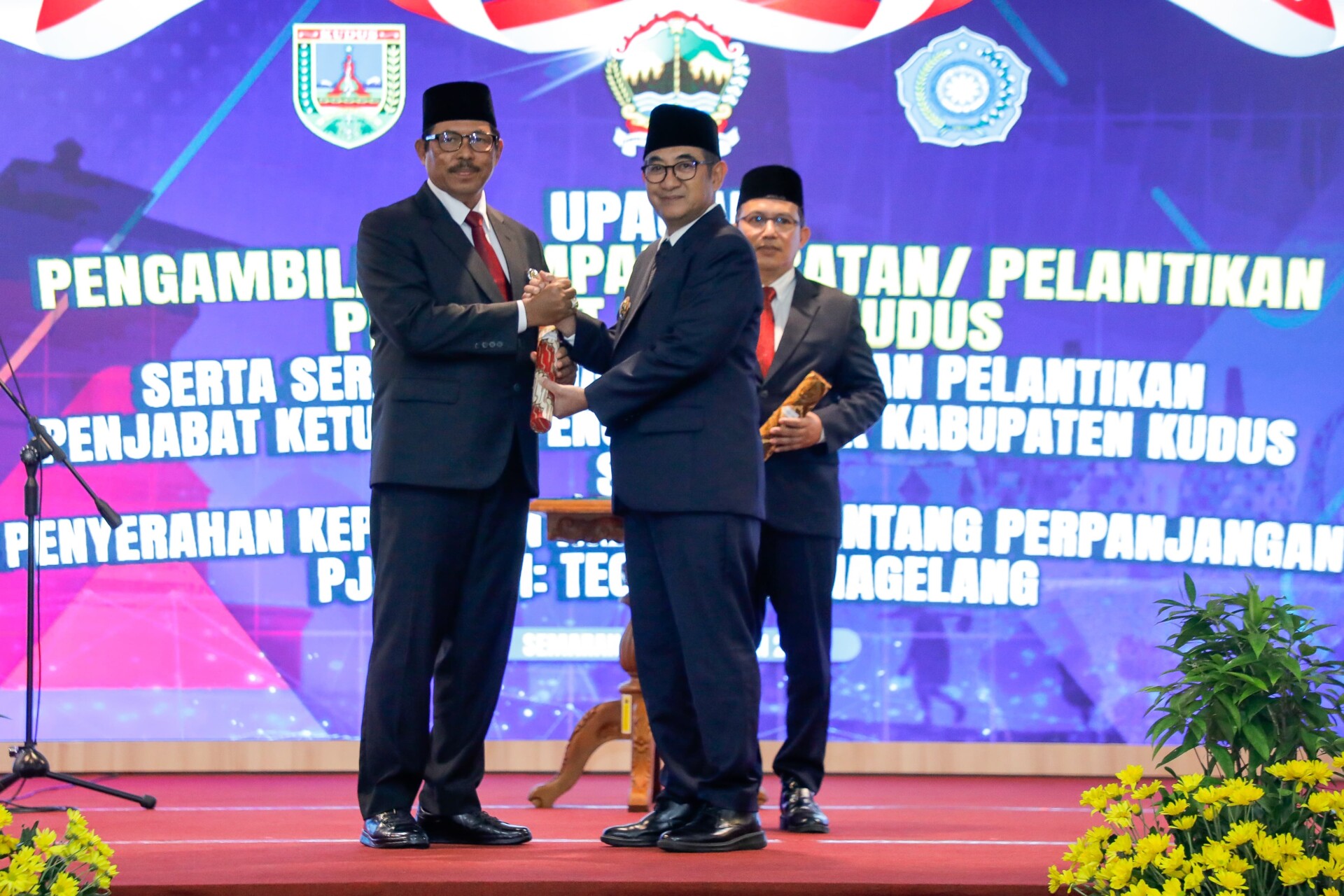 SK tersebut diserahkan oleh Penjabat Gubernur Jawa Tengah, Nana Sudjana di Gedung Gradhika Bhakti Praja, Semarang, Senin (13/1/2025). Pada kesempatan yang sama, turut diserahkan SK perpanjangan masa jabatan kepada Pj Bupati Tegal dan Pelantikan Pj Bupati Kudus.