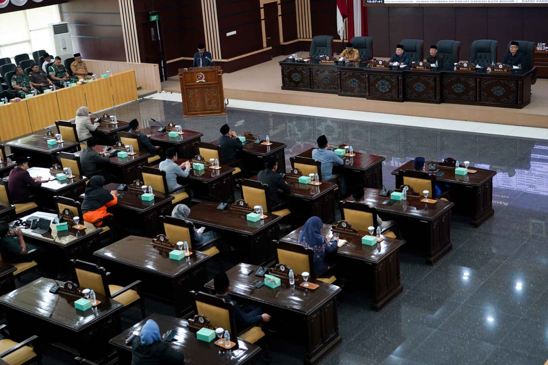 Rapat paripurna dipimpin Ketua DPRD Kota Bogor Dr. Adityawarman Adil, S.Si., M.Si., serta dihadiri Wakil Wali Kota Bogor, Sekretaris Daerah, unsur Forkopimda, pimpinan OPD, dan seluruh anggota DPRD.