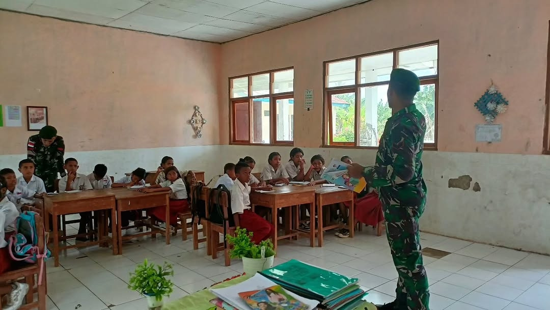 Malaka – Di tengah tugas menjaga perbatasan RI-RDTL, Satgas Pamtas RI–RDTL Sektor Timur Yonarmed 12 Kostrad Pos Motamasin tak melupakan tanggung jawab sosialnya. Mereka hadir memberikan sentuhan pendidikan dengan mengajarkan Matematika kepada siswa-siswi SDN Metamauk, Kecamatan Kobalima Timur, Kabupaten Malaka. Aksi ini adalah wujud nyata dukungan terhadap peningkatan kualitas pendidikan di wilayah perbatasan.