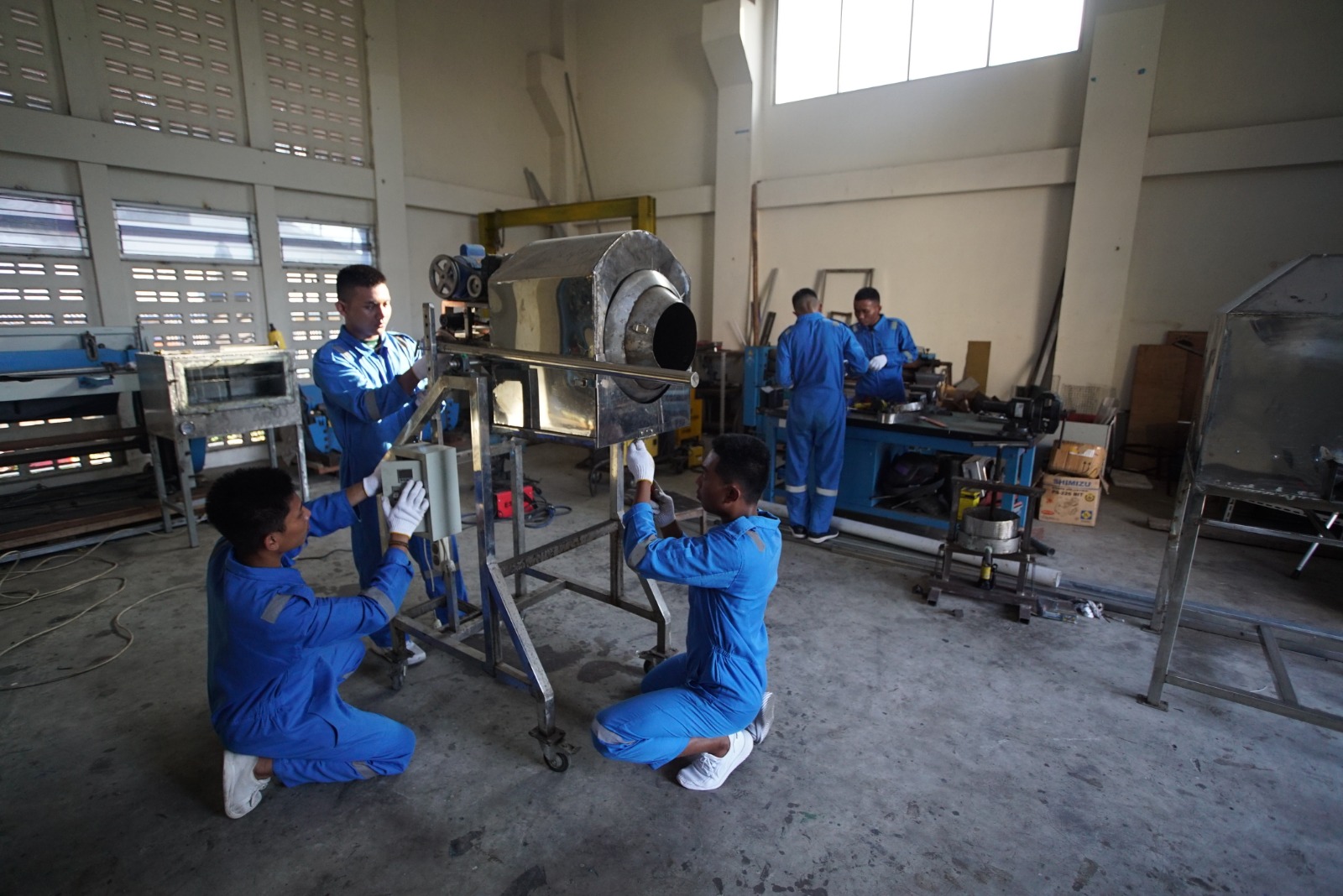 Salah satunya, para Taruna/i Politeknik KP Sidoarjo yang tengah menjalani kegiatan MBKM di Loka Riset Mekanisasi Pengolahan Hasil Perikanan (LRMPHP) Bantul. Para Taruna/i menghasilkan karya berupa 5 (lima) alat mesin perikanan (alsinkan) yakni Rotary Dryer, Hidrolik Press, Oven Multifungsi, Oven Asap Cair, dan Pindang Higinies.