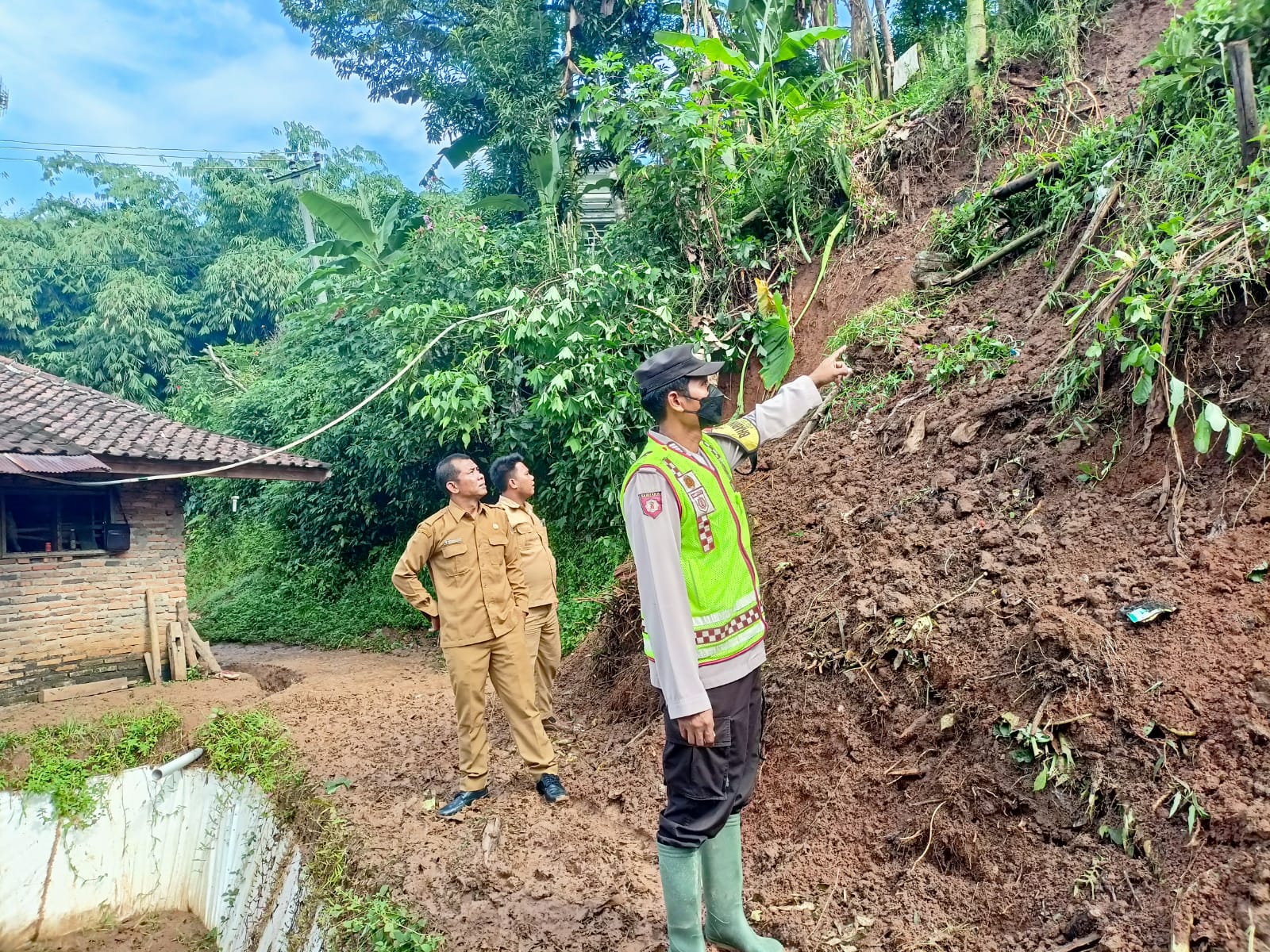 Lebak – Kapolsek Cileles bersama dengan anggota memonitoring bencana alam tanah Longsor di wilayah hukum Polsek Cileles Senin, (30/05/2022).