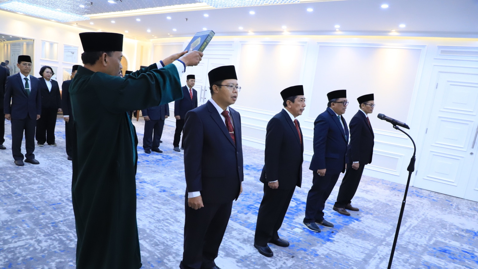 Hadir sebagai saksi pelantikan, Sekretaris Jenderal Muhammad Ali Ramdhani dan Direktur Jenderal Pendidikan Islam Abu Rokhmad.
