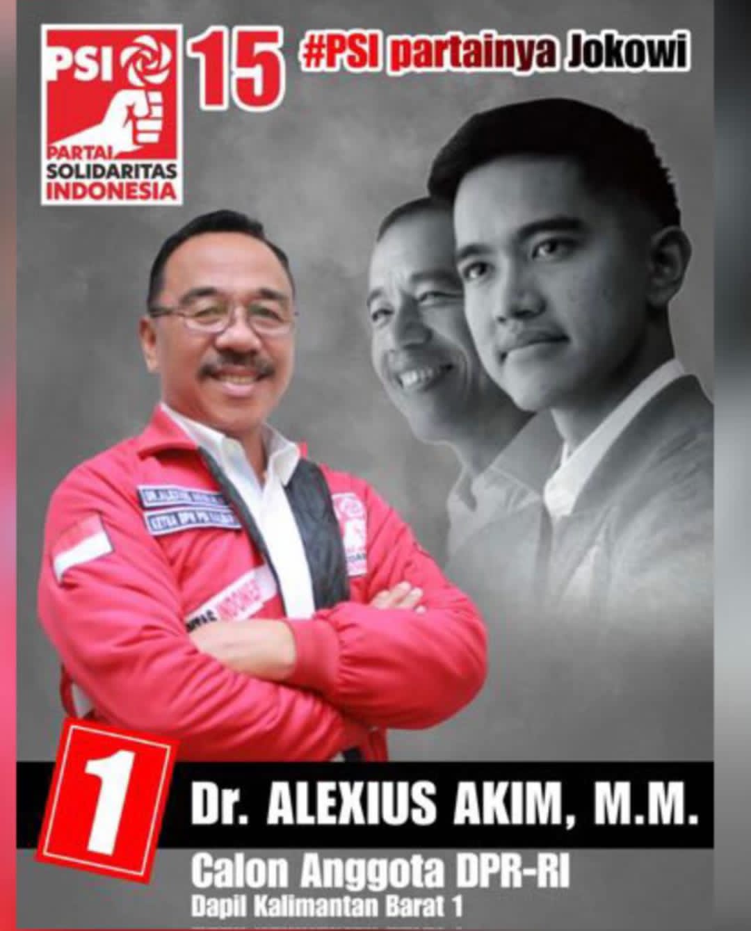 Dr.Alexius Akim,.M.M, Sosok putra daerah yang tidak asing lagi buat seluruh masyarakat Kalimantan Barat, Dr.Alexius Akim,.M.M, Calon Anggota DPR- RI dapil 1 Kalbar dengan Nomor Urut : 1, dari partai PSI ini siap mewujudkan aspirasi masyarakat sebagi pelayan umat di Kalbar,untuk membangun perbaikan mutu SDM Unggul meningkatkan kualitas pendidikan dan pasilitas pelayanan kesehatan, menciptakan lapangan pekerjaan, menuntaskan kemiskinan serta penyelesaian maslah – maslah hukum sengketa tanah yang selama ini belum tertuntaskan dan belum terjamah dan demi menuju Indonesia Emas 2045.