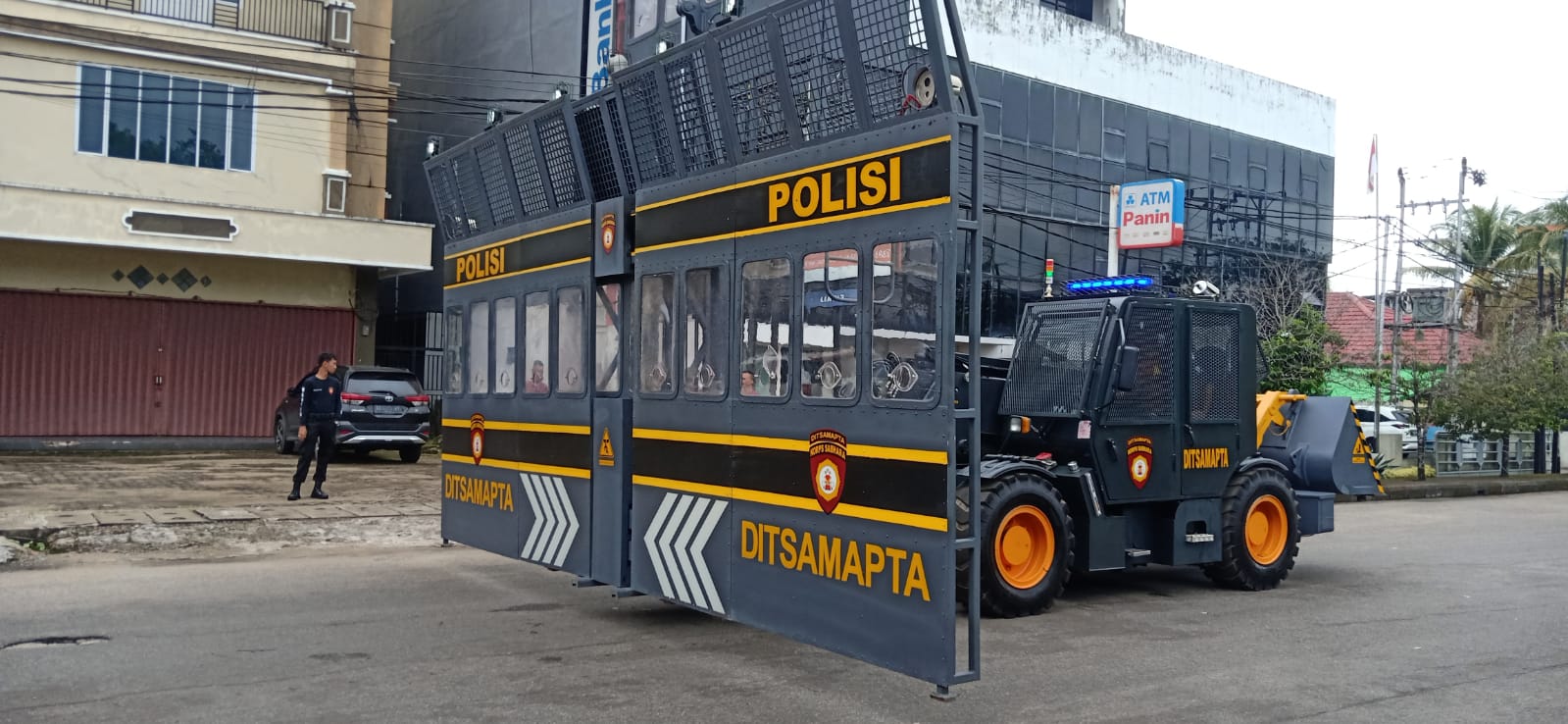 Pontianak Kalimantan Barat – PK NEWS Ditsamapta Polda Kalbar baru baru ini didatangkan dari Korps Sabhara Polri kendaraan taktis berupa telehandler yang berfungsi sebagai barikade / tameng penghalau massa saat penanganan unjuk rasa ( RCU Riot Control Unit ) dan rantis Multiguna yang di produksi tahun 2022 Kamis 8/12/2022