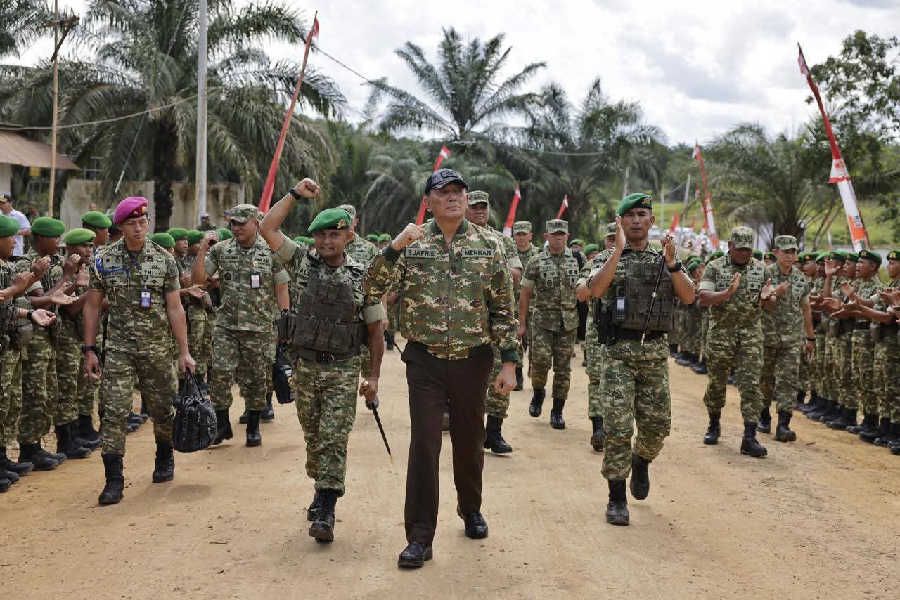 Kaltim – Menteri Pertahanan Sjafrie Sjamsoeddin melaksanakannya kunjungan kerja ke Batalyon Infanteri Teritorial Pembangunan (Yonif TP) 827/Mahakam Cakti Yudha di Muara Tae, Kabupaten Kutai Barat, Kalimantan Timur, Selasa (13/1), untuk meninjau kesiapan satuan sekaligus memberikan arahan pembinaan prajurit TNI ke depan.