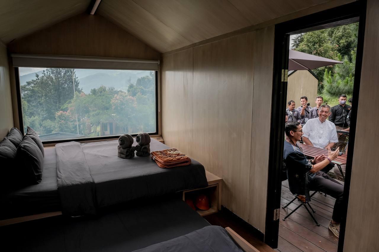 Menparekraf Sandiaga Salahuddin Uno saat mengunjungi Bobocabin Gunung Mas dalam rangkaian kunjungan kerjanya memantau kesiapan pelaku pariwisata menghadapi musim libur lebaran, Senin (8/4/2024).