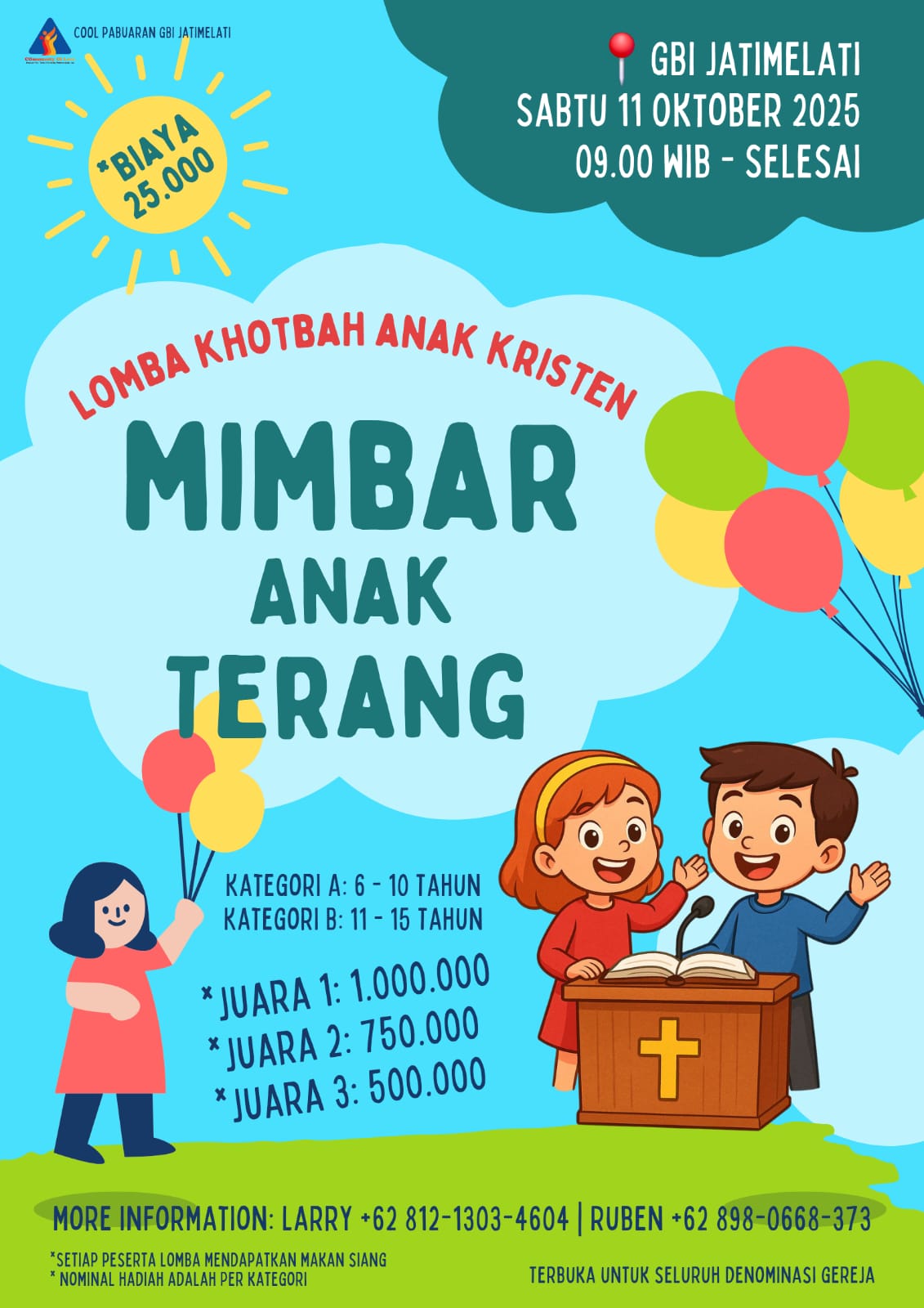 “Mimbar Anak Terang” bukan hanya sekadar lomba, tetapi juga sebuah perayaan iman, harapan, dan kasih. Mari kita bersama-sama menciptakan atmosfer yang mendukung dan memberkati bagi anak-anak Kristen untuk terus bersinar sebagai terang Kristus di tengah dunia.