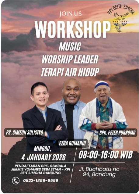Bandung — Siap awali tahun 2026 dengan pemahaman penyembahan yang lebih dalam dan rohani yang lebih segar? Kehilat Pemulihan Indonesia (KPI) Beith Simcha Bandung akan menggelar Workshop Rohani Sehari yang pastinya bikin mata terbuka – membahas hakikat musik rohani, kepemimpinan pujian yang benar, dan pemulihan hidup berdasarkan Firman Tuhan!