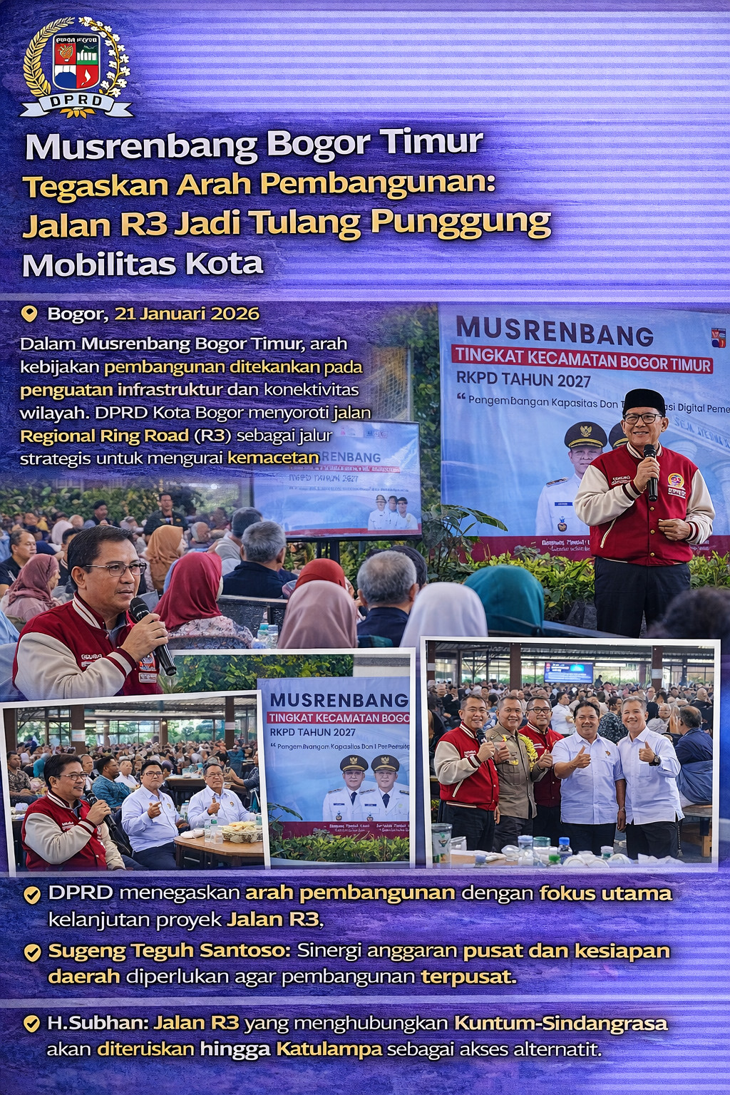 Melalui forum ini, DPRD Kota Bogor berharap pembangunan di wilayah Bogor Timur dapat berjalan berkesinambungan, terukur, dan benar-benar menjawab kebutuhan warga. Musrenbang pun kembali ditegaskan sebagai fondasi penting dalam mewujudkan pembangunan kota yang inklusif dan berkelanjutan.