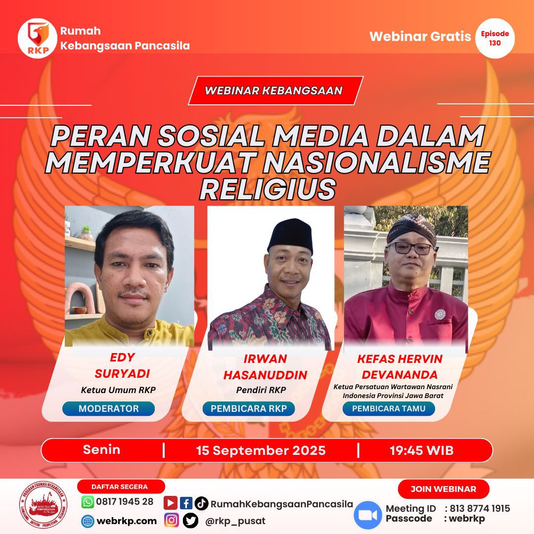 Bogor – Pada hari Senin, 15 September 2025, pukul 19:45 WIB, Rumah Kebangsaan Pancasila (RKP) mengadakan diskusi menarik dengan tajuk “Peran Media Sosial dalam Memperkuat Nasionalisme Religius” sebagai episode ke-130 dari seri webinar kebangsaan mereka. Diskusi yang dihadiri oleh 150 peserta dari seluruh Indonesia ini menunjukkan tingginya minat dan kesadaran masyarakat akan pentingnya nasionalisme religius di era digital.