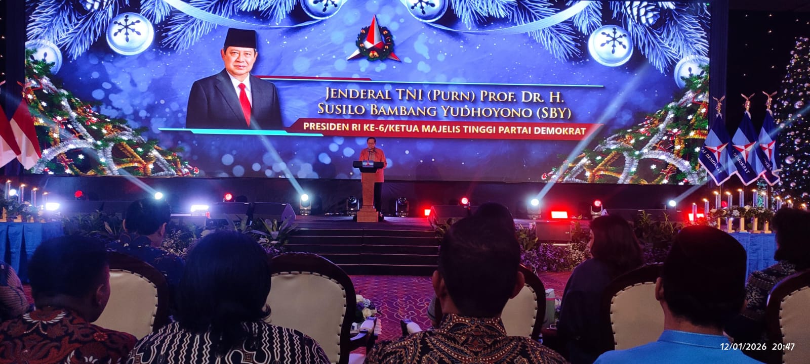 JAKARTA, 12 Januari 2026 — Perayaan Natal Nasional 2025 dan Tahun Baru 2026 Partai Demokrat yang digelar di Ballroom Hotel Bidakara, Jakarta, berlangsung khidmat dan sarat pesan kebangsaan. Dalam suasana pujian, doa lintas agama, serta nuansa persaudaraan, Presiden ke-6 Republik Indonesia sekaligus Ketua Majelis Tinggi Partai Demokrat, Susilo Bambang Yudhoyono (SBY), menegaskan bahwa kepentingan rakyat harus selalu ditempatkan di atas kepentingan partai.