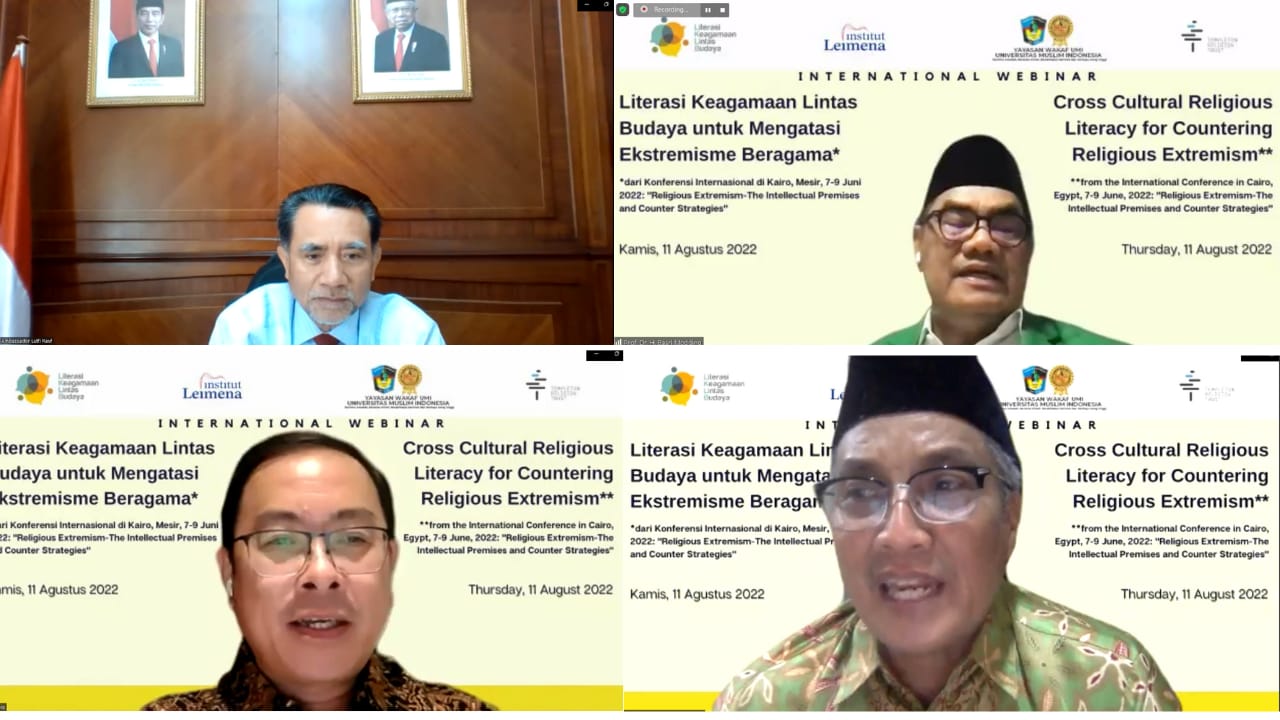 “Kaum muda merupakan segmen masyarakat yang sangat terekspos ancaman ekstremisme karena didukung pula oleh perkembangan teknologi informasi yang sangat pesat. Hal ini menyebabkan mereka dapat dengan mudah mengakses propaganda ekstremis dan konten terorisme di media,” kata Duta Besar Republik Indonesia (Dubes RI) di Kairo, Mesir, Lutfi Rauf, selaku pembicara kunci dalam Webinar Internasional Seri Literasi Keagamaan Lintas Budaya (LKLB) bertema “LKLB untuk Mengatasi Ekstremisme Beragama: Menjawab Pesan Kairo” yang diadakan oleh Universitas Muslim Indonesia (UMI) Makassar dan Institut Leimena, Kamis (11/8/2022) malam.