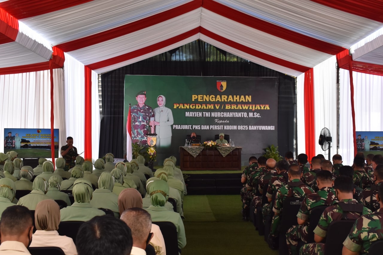 Dalam pengarahan Mayjen TNI Nurcahyanto, M.Sc Pangdam V/Brawijaya menyampaikan,”Saya sangat bangga sekali bisa hadir di Kodim 0825 Banyuwangi ini dan kapan lalu saat pemeriksaan mudik lebaran datang kesini mendampingi Gubernur Jatim dan baru kali ini saya bisa hadir dan bertatap muka dengan semua Prajurit,”ucapnya