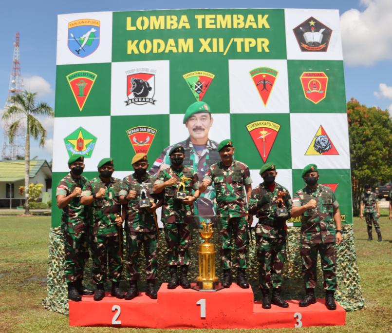 Adapun yang berhasil menjadi juara dalam lomba menembak Piala Pangdam XII/Tpr, untuk kategori tim, berhasil menjadi juara umum yakni kontingen dari Yonif R 641/Bru, kemudian juara 2 kontingen Yonarmed 16/Kmp, selanjutnya juara 3 kontingen dari Yonzipur 6/SD.