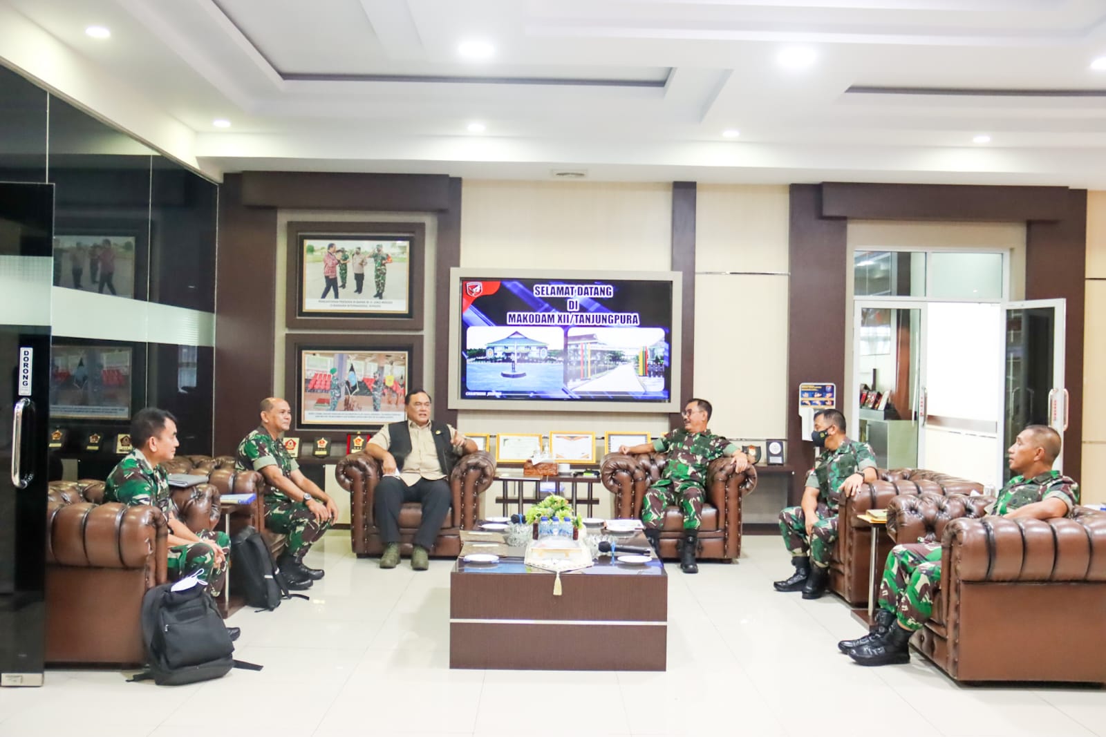 Kubu Raya, Kamis (24/2/22) – Panglima Kodam XII/Tanjungpura, Mayjen TNI Sulaiman Agusto, S.I.P., M.M., menerima kunjungan kerja dari Asisten Khusus II Menhan, Letjen TNI (Purn) Hotmangaradja Pandjaitan di Ruang Koridor Gedung A Makodam XII/Tpr, Sungai Raya, Kubu Raya.