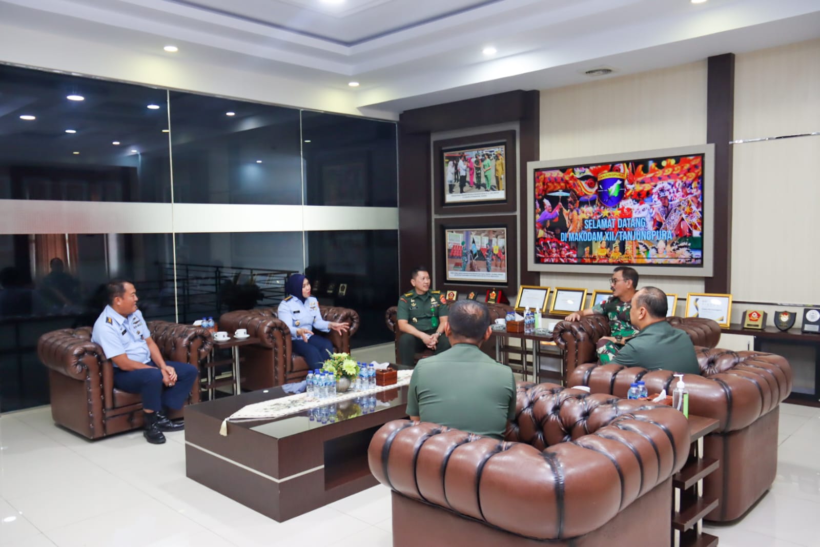 Kubu Raya, Kamis (2/2/23) – PK NEWS Pangdam XII/Tanjungpura Mayjen TNI Sulaiman Agusto, S.I.P., M.M., menerima kunjungan Kepala Oditurat Militer (Kaotmil) II-06 Pontianak, Kolonel Sus Eni Sulisdawati, S.H., dan Kepala Pengadilan Militer (Kadilmil) I-05 Pontianak, Kolonel Chk Setiyanto, S.H. Pertemuan berlangsung di Lobby Kehormatan, Makodam XII/Tpr.