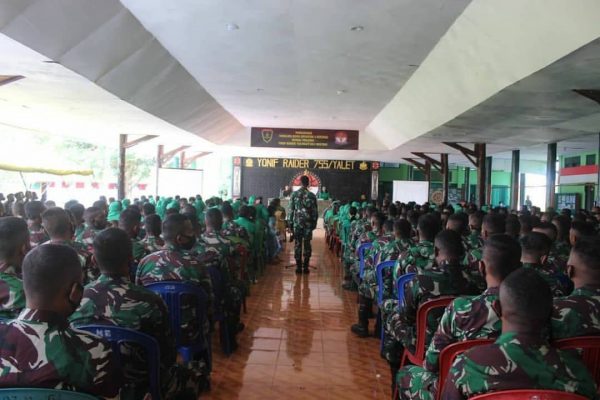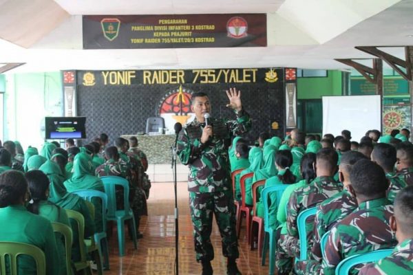 MERAUKE – PELITAKOTA.ID Panglima Divisi Infanteri 3 Kostrad Mayjen TNI Kunto Arif Wibowo, S.I.P., didampingi Ketua Persit Kartika Chandra Kirana (KCK) Koorcab Divif 3 PG Kostrad melaksanakan kunjungan kerja di Yonif Raider 755 Kostrad, Merauke, Kamis (2/9/2021).