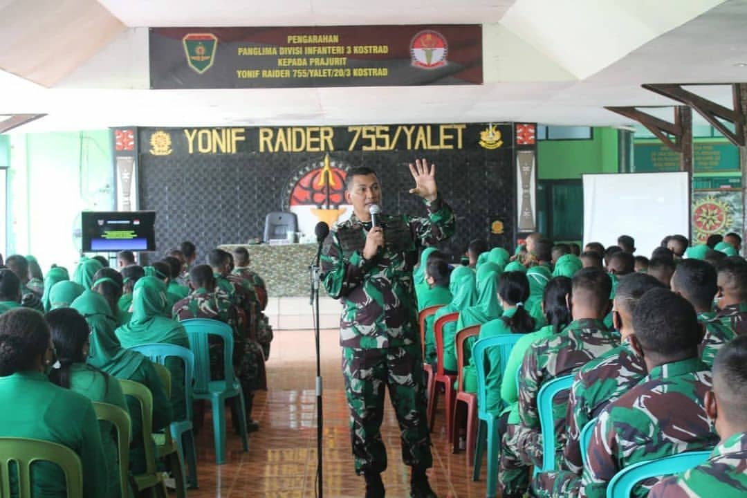 Pada kesempatan ini juga, Danyonif Raider 755 Kostrad mewakili segenap prajurit mengucapkan terima kasih kepada Pangdivif 3 Kostrad karena telah menyempatkan untuk berkunjung ke satuan ini. (Romo Kefas).