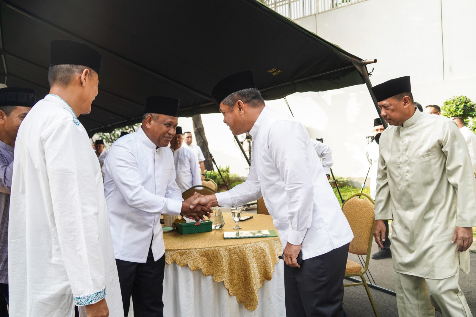 Jakarta – Panglima Kostrad (Pangkostrad) Letnan Jenderal TNI M. Saleh Mustafa mendampingi Kepala Staf Angkatan Darat (Kasad) Jenderal TNI Maruli Simanjuntak, MS.c memperingati Hari Raya Idul Adha 1445 H dengan khidmat di Komplek Pati AD, Jakarta. Senin (17/6/2024).