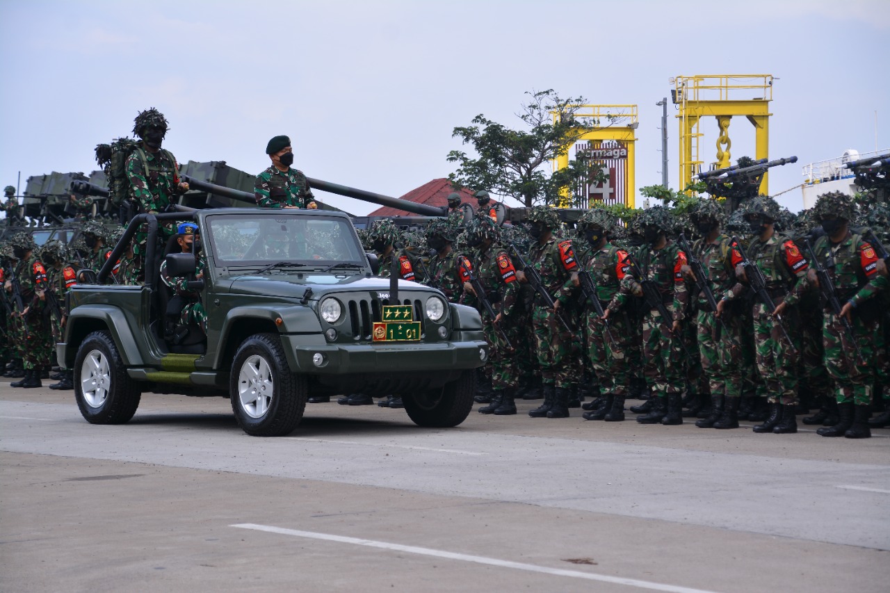 CILEGON – PELITAKOTA.ID Panglima Komando Cadangan Strategis Angkatan Darat (Pangkostrad) Letnan Jenderal TNI Dudung Abdurachman, S.E., M.M., memimpin Upacara Pemberangkatan Latihan Antar Kecabangan (Ancab) Brigif Raider 13 Divisi Infanteri 1 Kostrad TA 2021 dan perkuatannya, bertempat di Pelabuhan Merak Cilegon, Banten. Rabu (03/11/2021).