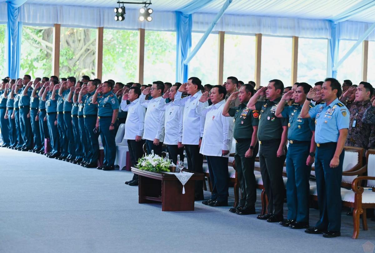 Bogor – Presiden Republik Indonesia Prabowo Subianto didampingi Panglima TNI Jenderal TNI Agus Subiyanto bersama Kepala Staf Angkatan menghadiri dan memberikan arahan kepada para Komandan Satuan (Dansat) Jajaran TNI, bertempat di Istana Kepresidenan Bogor, Jawa Barat, Jumat (07/02/2025).