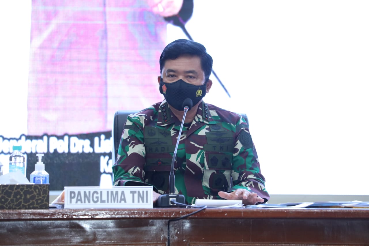 Mengawali arahannya, Panglima TNI Marsekal Hadi Tjahjanto mengucapkan terimakasih semua pihak di Kalbar atas kerja kerasnya selama ini sehingga sudah mampu mengendalikan kasus Covid-19 mulai dari kasus konfirmasi kemudian juga ditindaklanjuti dengan melaksanakan 3 M dan 3 T serta vaksinasi.