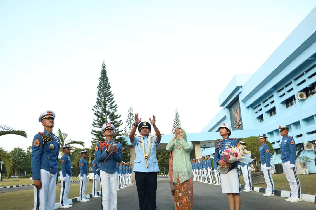 YOGYAKARTA – PELITAKOTA.ID Rangkaian kegiatan Upacara Surya Senja selesai dilaksanakan, tiba saatnya Marsda TNI Eko D. Indarto, S.I.P., M.Tr.(Han) beserta Ibu Asiana Eko D. Indarto melangkah meninggalkan Kesatrian Akademi Angkatan Udara (AAU) dalam jajar kehormatan (Passing Out Parade) dari para Karbol (Taruna AAU) dan seluruh Antap yang berbaris dari Mako AAU sampai pintu gerbang Garuda 2 AAU, Kamis Sore (25/5/2023).