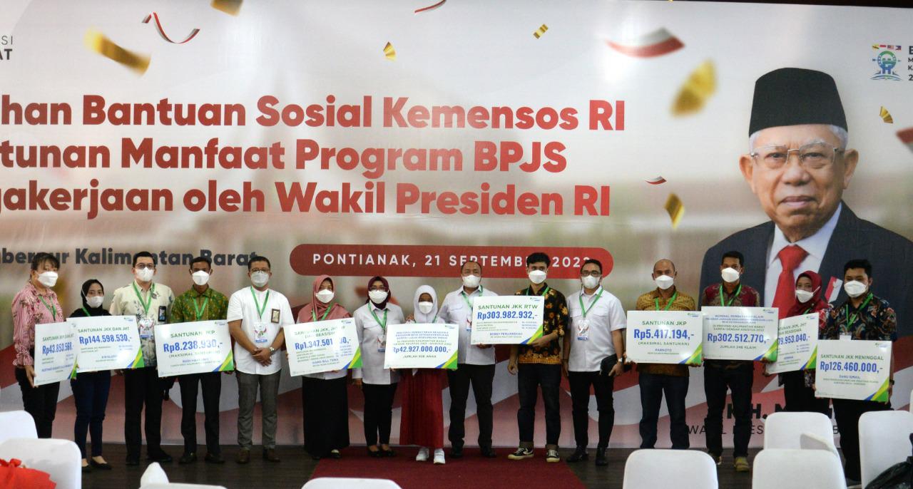 Santunan yang diberikan terdiri dari manfaat Jaminan Kecelakaan Kerja (JKK), Jaminan Kematian (JKM), Jaminan Hari Tua (JHT), Jaminan Pensiun (JP), Jaminan Kehilangan Pekerjaan (JKP), serta manfaat beasiswa pendidikan anak dan Return to Work (RTW). Dalam penyerahan simbolis tersebut wapres turut didampingi oleh Ketua Dewan Pengawas BPJAMSOSTEK Muhammad Zuhri dan Gubernur Kalimantan Barat Sutarmidji,”