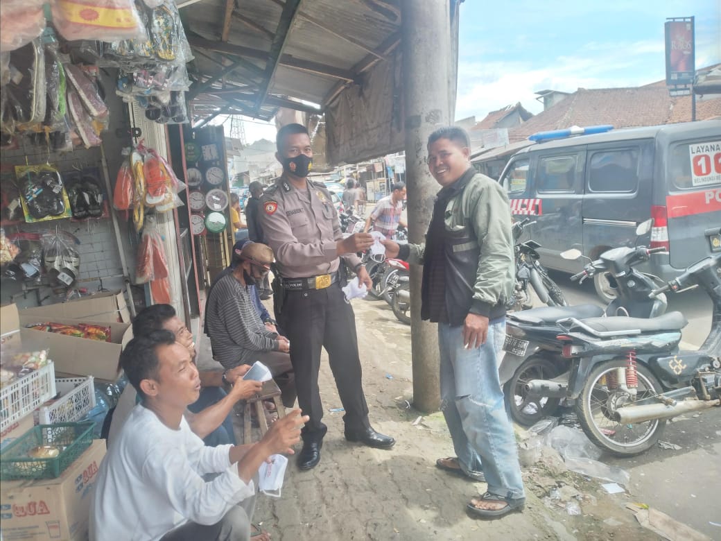 Lebak || Pandemi Covid-19 yang belum berakhir Personil Polsek Cipanas, terus memberikan Himbauan kepada warga masyarakat yang melintas di Terminal Pasar Gajrug Desa Bintangresmi Kecamatan Cipanas tentang pentingnya Prokes dan juga membagikan Masker gratis Pada hari Sabtu (09/07/2022)