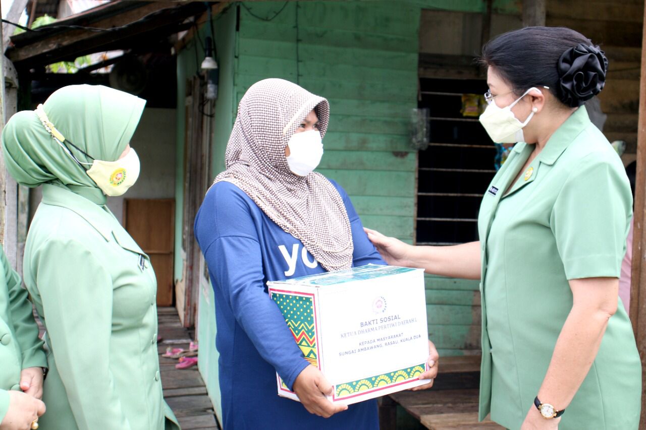 Bakti sosial dipimpin langsung oleh Ketua Persit KCK Daerah XII/Tanjungpura, Ny. Helly Sulaiman Agusto. Dalam pelaksanaannya, Ny. Helly Sulaiman Agusto memberikan bantuan berupa paket Sembako kepada perwakilan masyarakat dari Sungai Ambawang, Rasau dan Kuala Dua.