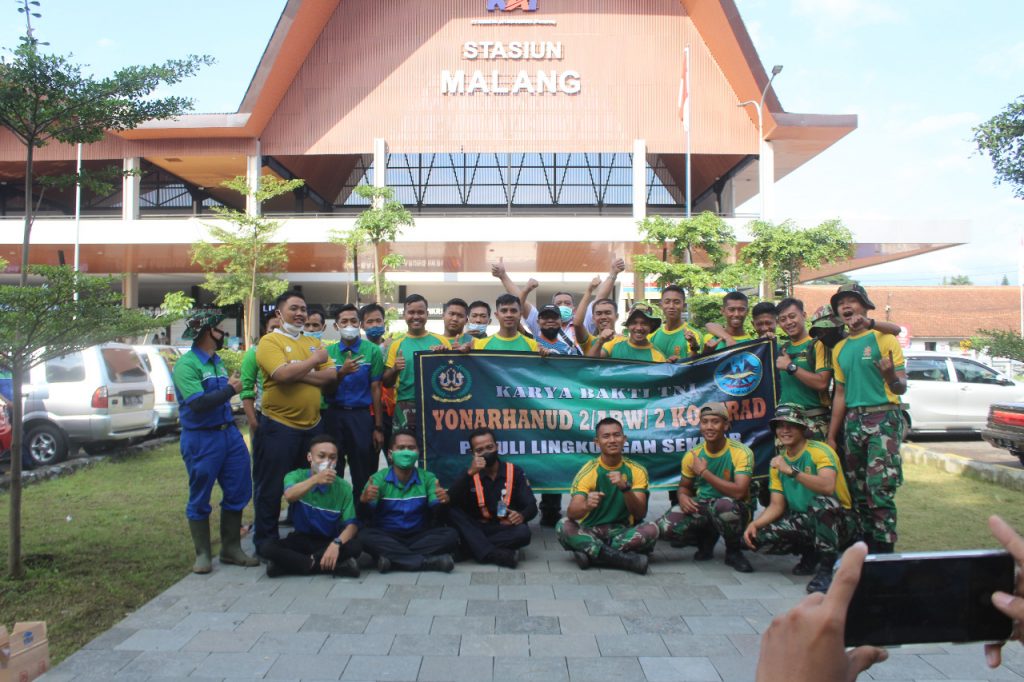Dengan tema peduli lingkungan, puluhan prajurit yang dipimpin oleh Letnan Satu Arh Felix melaksanakan pembersihan di sekitar lingkungan Stasiun yang turut dibantu oleh beberapa karyawan Stasiun Malang Kota Baru, mengingat Stasiun merupakan fasilitas umum yang harus dijaga kebersihannya.