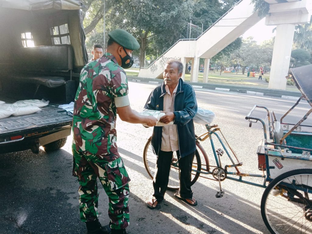 Disisi lain, prajurit Yonarhanud 2 Kostrad juga melaksanakan bakti sosial pembagian Sembako berupa paket beras kepada tukang becak yang terlihat di sekitar lingkungan asrama yang bertujuan untuk membantu meringankan kesulitan masyarakat di bidang ekonomi akibat dampak dari pandemi Covid-19.