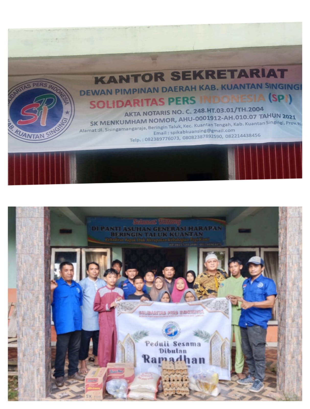 Kuansing/Riau – Dewan Pimpinan Daerah (DPD) Kabupaten Kuantan Singingi Solidaritas Pers Indonesia (SPI), menyambangi Panti Asuhan Generasi Harapan yang berada di Desa Beringin Taluk Kecamatan Kuantan Tengah dalam rangka peduli sesama di Bulan Ramadhan 1445 H/2024 Masehi, pada Jum’at, 22/03/2024.