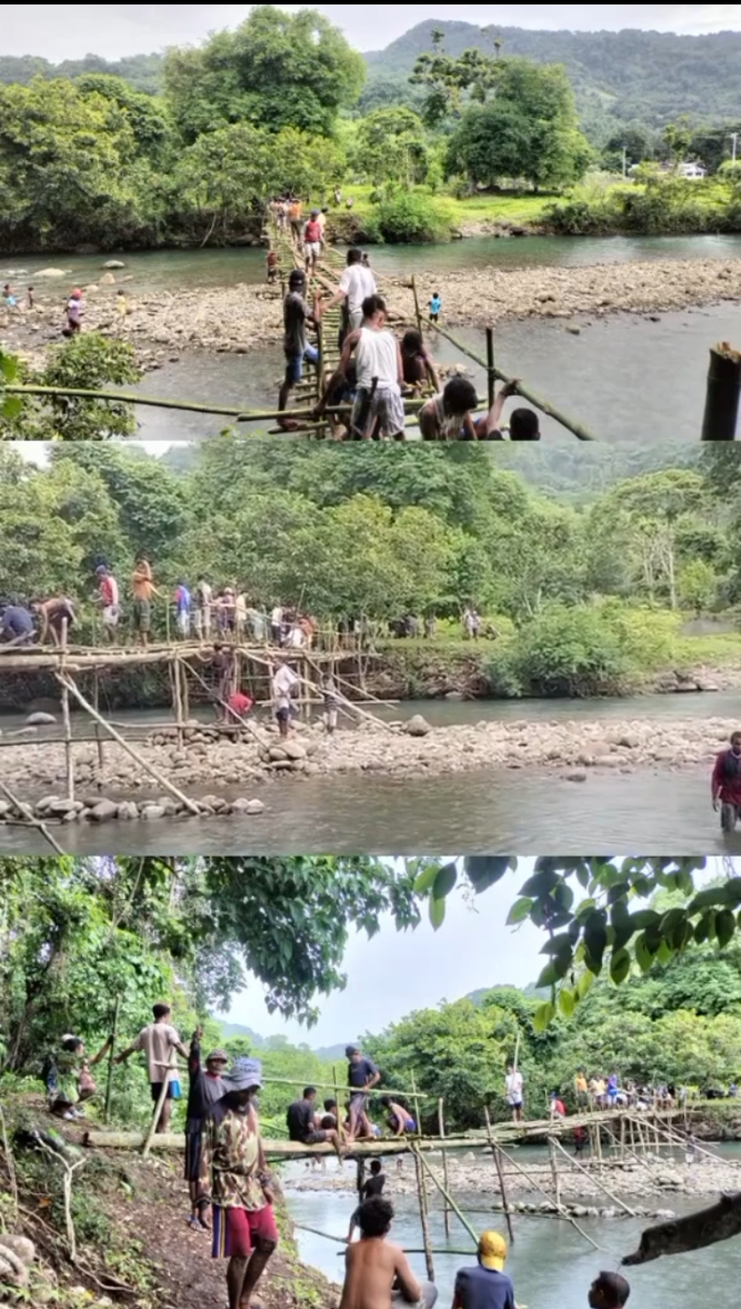 Pulau Walter – Di tengah gemuruh pembangunan nasional yang dipuja-puji dengan berbagai bumbu pencitraan, warga Desa Eray di Pulau Wetar, Kabupaten Maluku Barat Daya, harus bertaruh nyawa setiap hari hanya untuk bisa pergi ke kebun dan mencari nafkah. Desa ini dipisahkan oleh sungai tanpa jembatan permanen, dan karena pemerintah tak kunjung hadir, warga membangun sendiri jembatan darurat dari kayu dan bambu, seadanya.