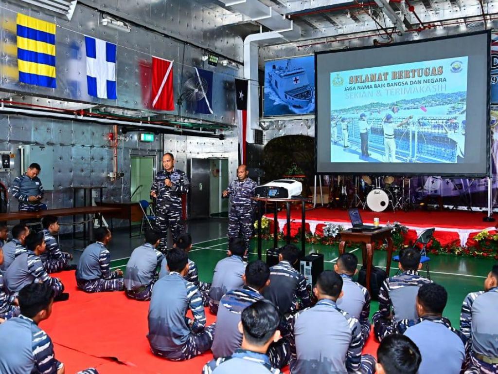 Solomon – Guna meningkatkan pemahaman tentang aspek hukum operasi, Personel Satgas Port Visit 2024 menerima pembekalan Aspek Hukum Operasi dalam Penugasan dan ROE (Rules of Engagement) atau aturan pelibatan yang disampaikan oleh Kepala Dinas Hukum (Kadiskum) Koarmada III Kolonel Laut (H) Abdul Halid Sabale, S.H. di Geladak Heli KRI dr. Wahidin Sudirohusodo (KRI WSH-991) saat berada di Perairan Solomon Islands, Kamis (24/10/2024).