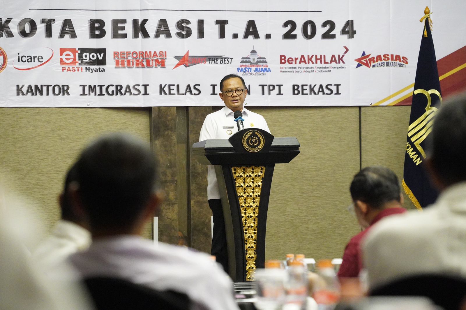 Pj. Wali Kota Bekasi, Gani Muhamad dan unsur-unsur atau stakeholder penegak terkait lainnya hadir dalam rapat tersebut yang bertujuan untuk memperkuat pengawasan bagi Warga Negara Asing.