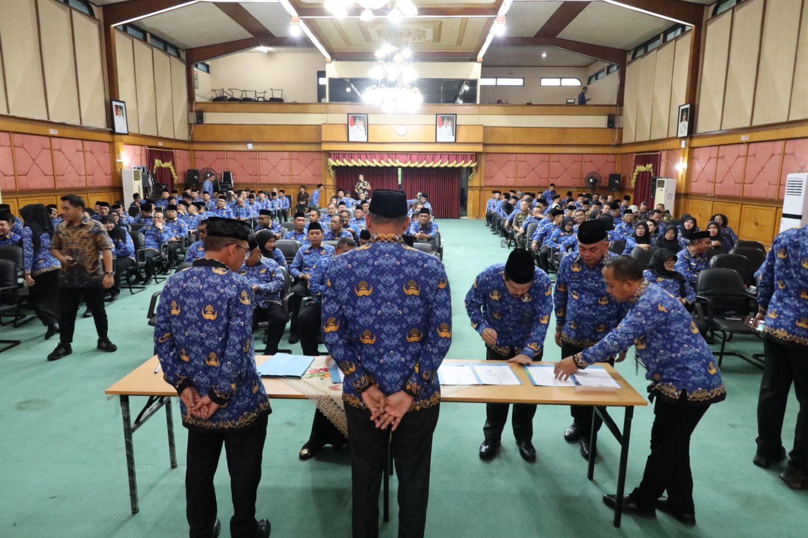 Kota Bekasi – Pemerintah Kota Bekasi menggelar kegiatan penandatanganan perjanjian kinerja dan Pakta Integritas bagi para pejabat di lingkungan Pemerintah Kota Bekasi, yang dilaksanakan di Balai Patriot Kantor Wali Kota Bekasi.