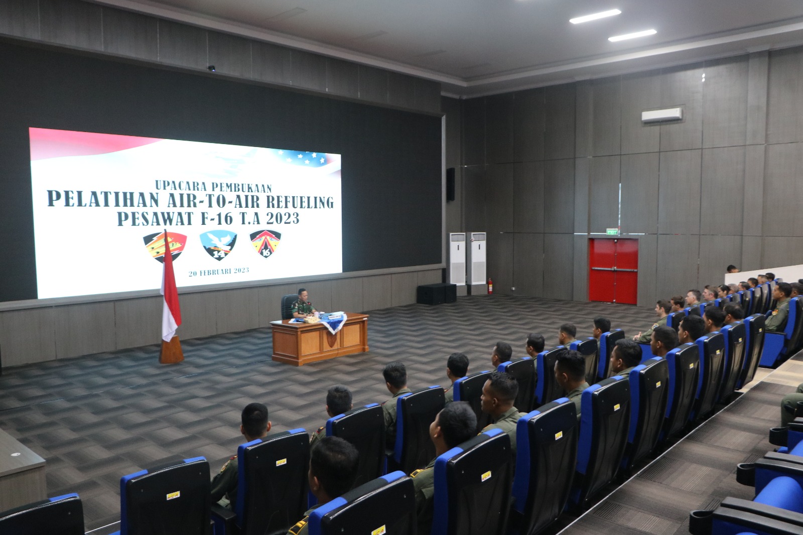 Komandan Lanud Iswahjudi Marsma TNI Irwan Pramuda, SE, MM membuka secara resmi pelatihan Air To Air Refueling Pesawat F-16 ini di Gedung ACMI Kapten Pnb Anm Surindro Supjarso, Lanud Iswahjudi. (20/2).