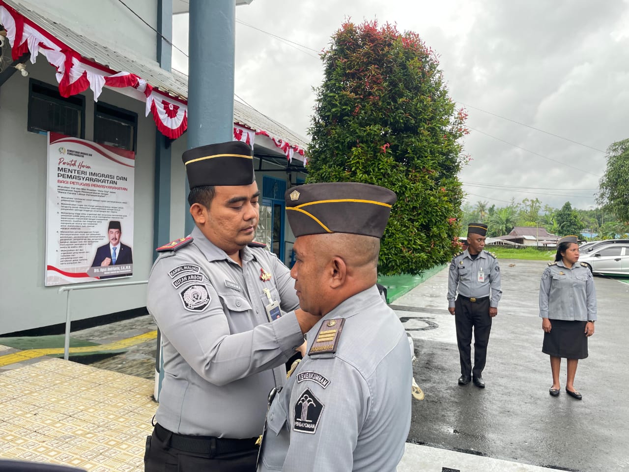 Ambon,05 Agustus 2025 – Dalam suasana apel pagi yang berlangsung khidmat di halaman Rumah Tahanan Negara (Rutan) Kelas IIA Ambon, dua orang petugas menerima kenaikan pangkat sebagai bentuk penghargaan atas dedikasi dan kinerja yang telah mereka tunjukkan selama ini. Kedua petugas tersebut adalah Hasan Touwe, yang naik pangkat dari Penata (III/c) menjadi Penata Tingkat I (III/d), serta Herianto, yang naik pangkat dari Penata Muda Tingkat I (III/b) menjadi Penata (III/c).