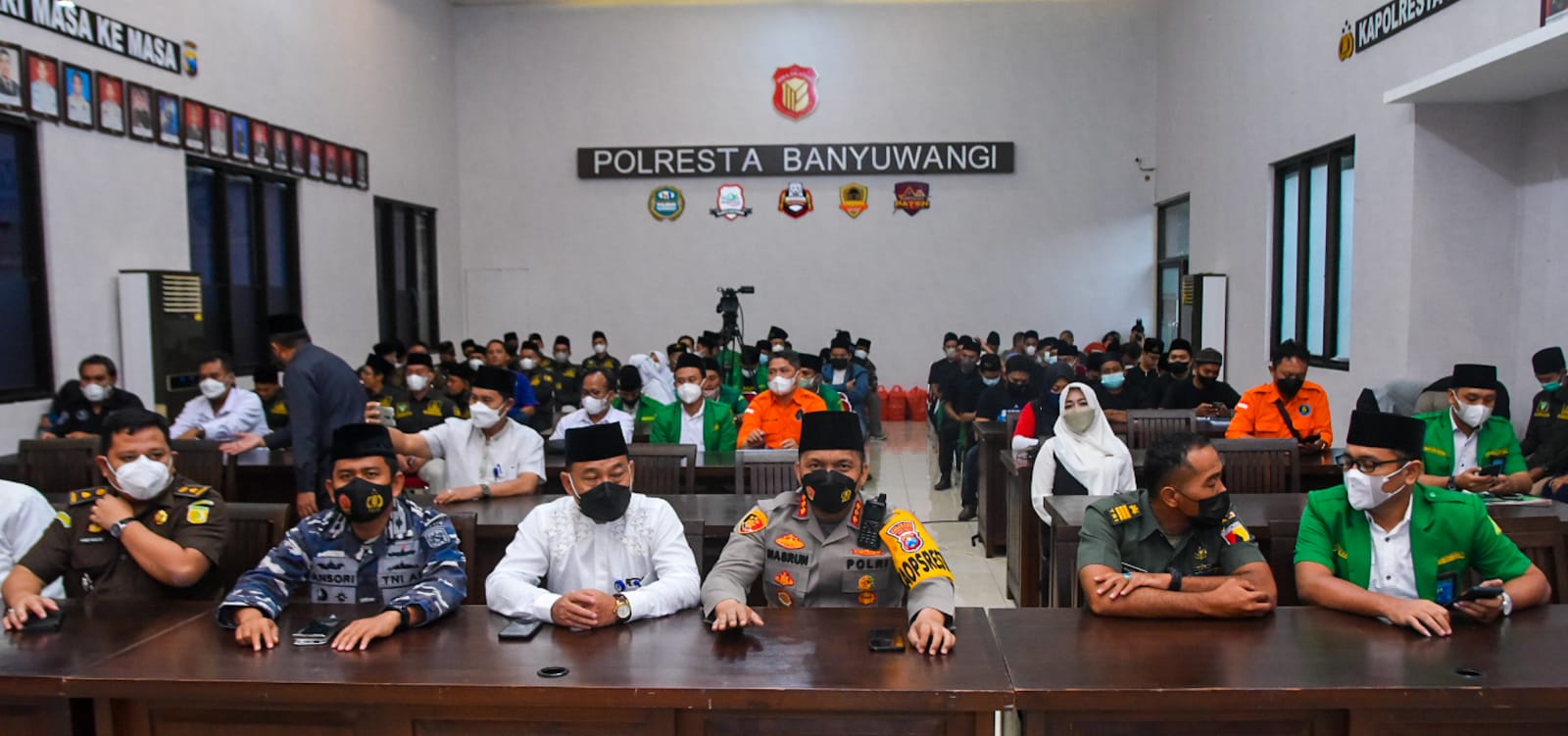 Banyuwangi – Kapolresta Banyuwangi Kombes Pol Nasrun Pasaribu menghadiri pelaksanaan pengukuhan dan Deklarasi Satgas Ansor Anti Narkoba Banyuwangi, bertempat di Rupatama Wirapratama Polresta Banyuwangi pada Rabu Sore (20/04/2022).