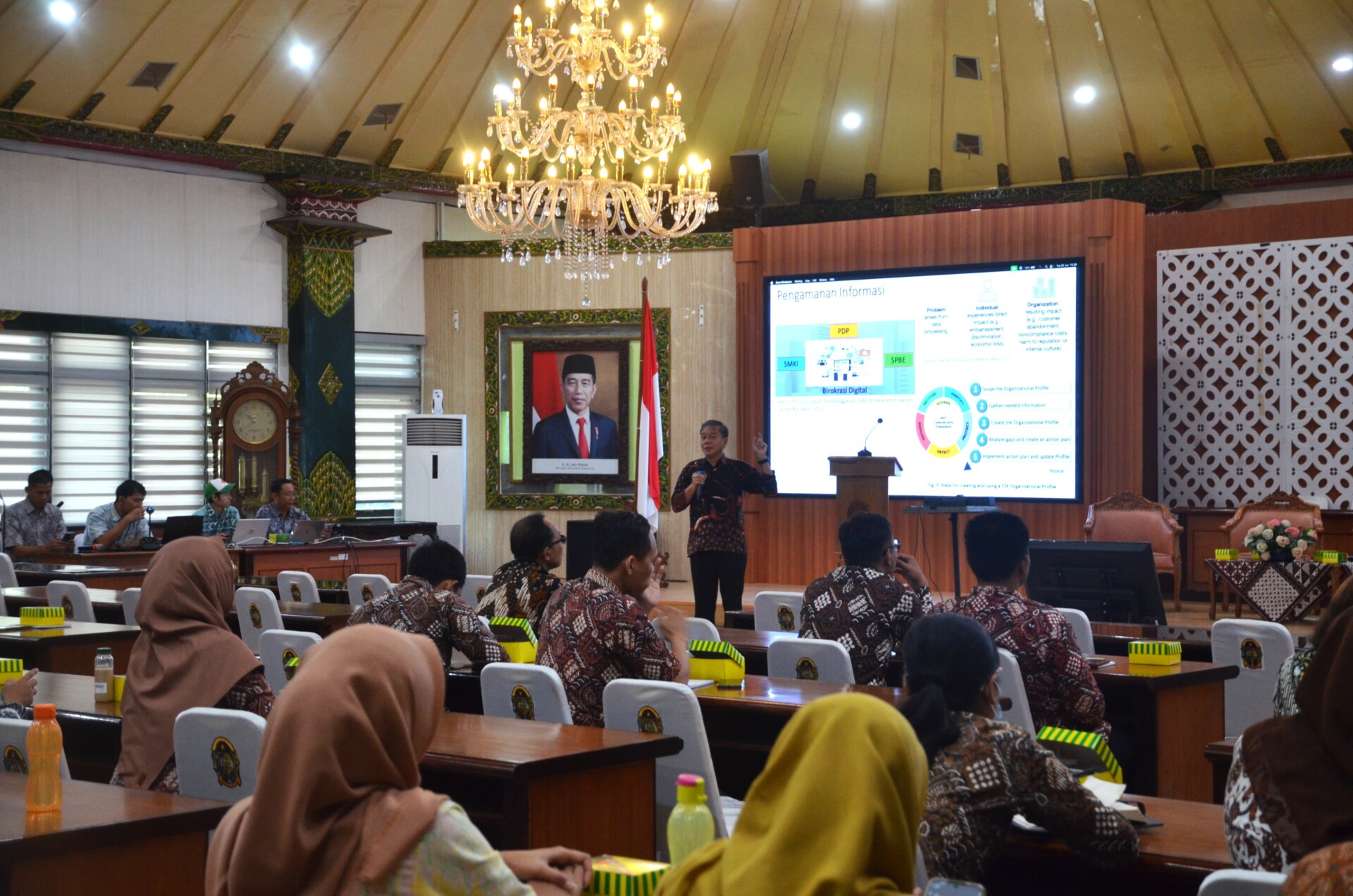 Kepala Dinas Komunikasi Informatika dan Persandian Kota Yogyakarta Ignatius Trihastono menyampaikan seiring dengan semakin masifnya pemanfaatan potensi-potensi digital, menurutnya sistem yang digunakan untuk memberikan pelayanan ke publik memiliki resiko dan tuntutan untuk mengelola keamanan informasi.